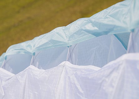 Selon la devise "Au plus léger, mais pas moins solide", le développement « Intelligent Light » repose sur une conception minutieusement pensée et un choix de matériaux adaptés. Dans la mesure du possible, nous utilisons des tissus légers, et dans les zones les plus sollicitées, des tissus plus robustes. De ce subtil mélange, nous obtenons des produits durables, de faible poids et volume, faciles et de hautes performances. Les parapentes sont légers et complétement utilisables pour les vols et gonflages quotidiennement.
